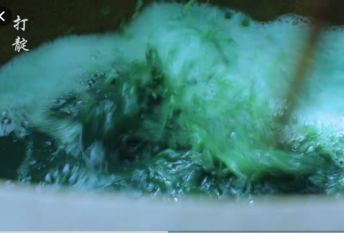 期间收割一次,收割下来用清水侵泡。用石板压好,水没蓝草,加热一夜,再冷却一夜。