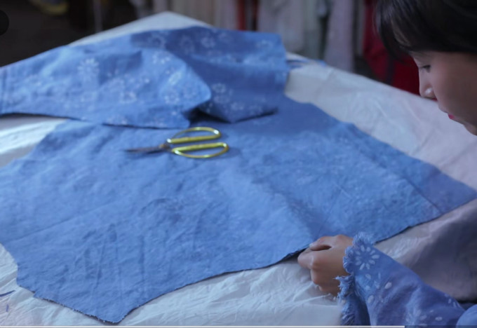 把染好的布料进行清洗,裁剪,缝制成衣或者床套、门帘。
