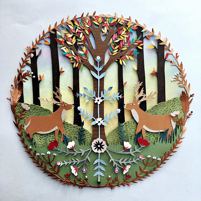 和李守白大气的剪纸风格比起来,下面这位国外的剪纸艺术家就十分的小清新。