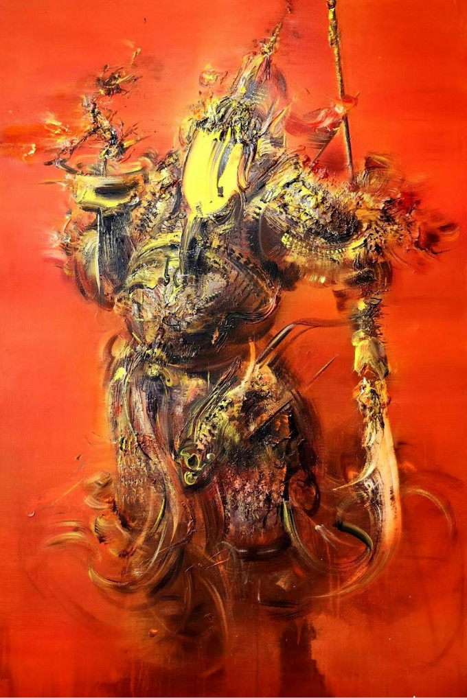 至2000年邓宇从清华美院进修归来,就开始以中国京剧、门神、太极为图式进行创作,开始量化笔触质感与画面的构成形式。