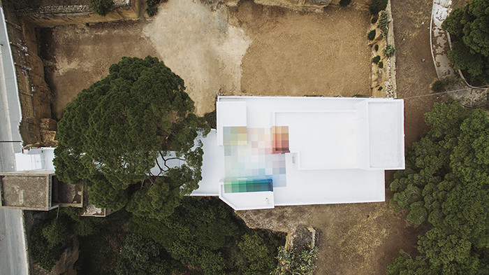 这个在西西里岛的作品是利用色彩来改变建筑空间的绘画,白色建筑被色块分成不同的区域,二维的色块和建筑空间相互作用,转换成立体的三维视觉效果,这个设计改变了周边空间,创造了一个新的视角。