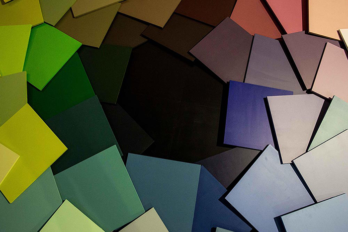 这个作品中,大地自然景观被翻译成颜色板,颜色成为了可见和静止时刻的媒介代表,不同颜色的组合和相互作用决定了,景观随着时间的推移,可能发生的变化。