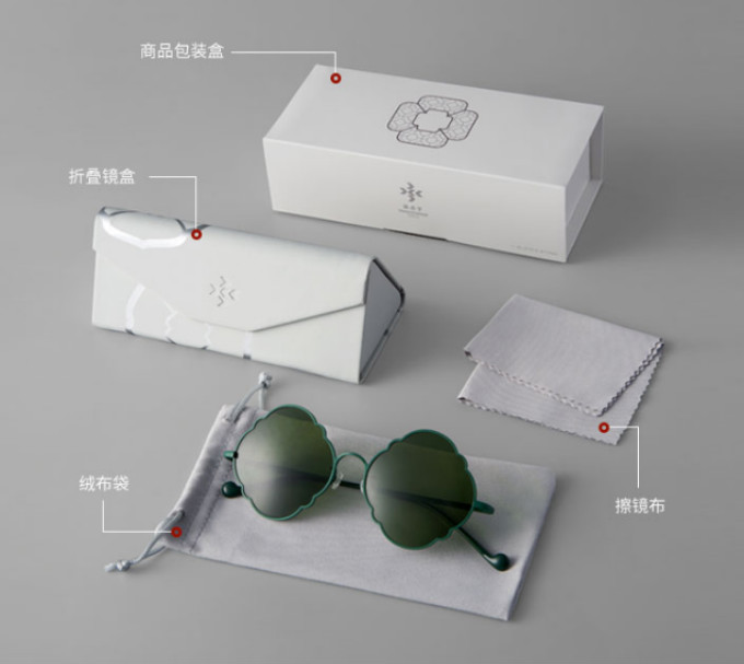 这款墨镜的设计来源于中式景窗,突破了传统式的框型设计,多了一份传统的韵味在其中。