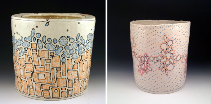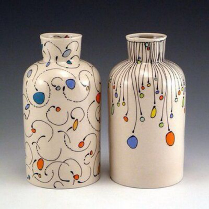 她把对画画的痴迷,和她的罐子结合在一起,在她一个朋友的工作室里开始了陶瓷艺术。