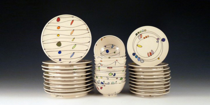 Emily free wilson的想象力可以把雨、烟火或糖果的图像都变成有趣的抽象设计,在陶瓷上舞蹈。