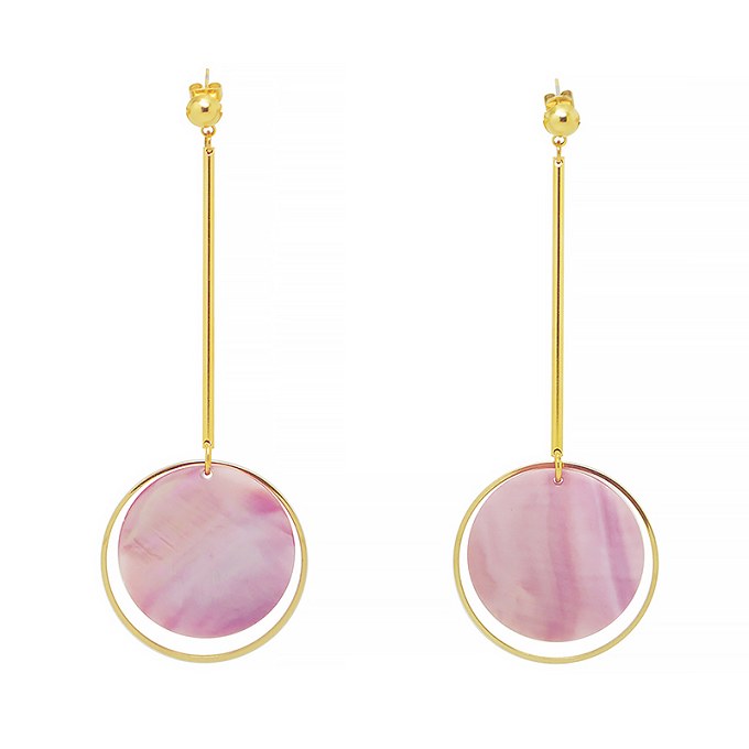 耳环的材质为铜镀金与粉红贝,总长度约为9.5cm,能够很好地修饰脸型。