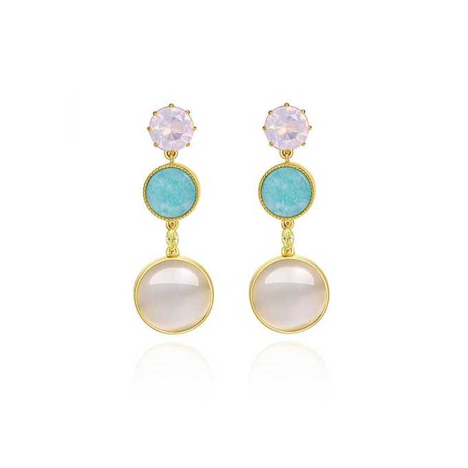 碧绿色的猫眼石与手工打磨的蛋白石,让耳环显得通透时尚,简洁明快的设计风格尽显高级感。