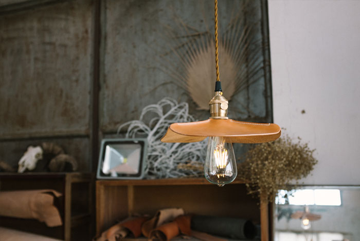 皮灯罩 手工缝制