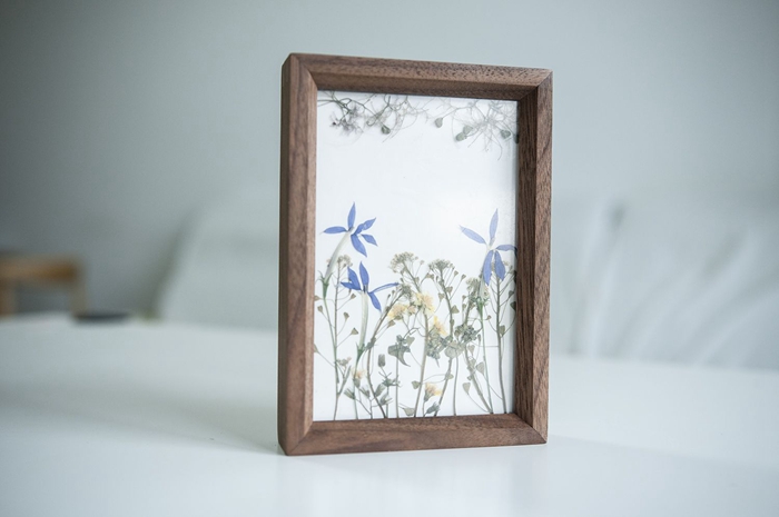 画框水曲柳实木榫卯结构,标本:野花蓝色星星花、黄色葶苈花,大阿米芹等