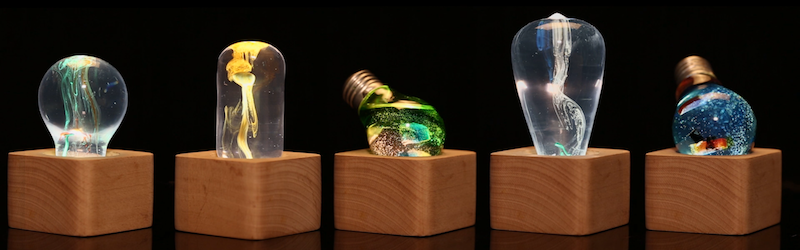E.P.Light美学灯是一款美学碰撞科学的实心灯泡,主材质选用的是环保树脂,不仅能够代替玻璃的透光性,也能规避玻璃灯泡易碎、发烫的特点,耐用环保,兼具美感与实用性,既能最大程度地表现灯泡的基本功能,同时,其易塑性和包容性更能承载美学的浪漫气息。E.P.Light改变人们对传统灯泡的固有认知,结合新型材料和创新工艺制作灯泡,给予灯光的色彩认知和搭配以更多可能,严谨的科学碰撞浪漫的美学,让每一盏灯都具备独一无二的艺术色彩呈现。