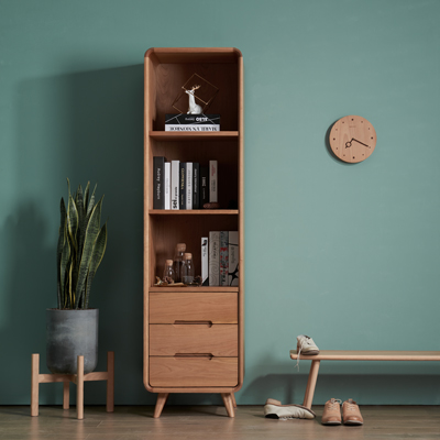 物应「凝月立柜」简约风格黑胡桃樱桃实木单体书柜三抽立柜高斗柜